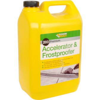 EverBuild Accelerator & Frost Proof is a liquid additive formulated to accelerate setting and hardening times of mortar, concretes, screeds and rendering to provide frost protection during the setting period.